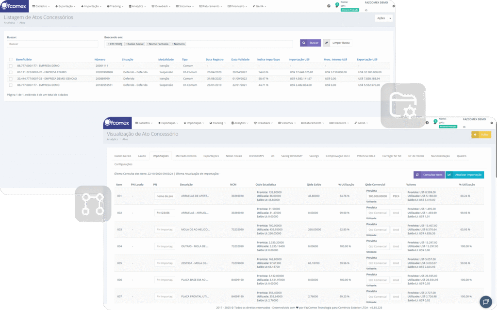 Trata-se de uma solução completa e centralizada que permite gerenciar todo o fluxo de uma operação de comércio exterior – desde o planejamento e análise de viabilidade até a emissão de documentos, controle de regimes especiais, extração de dados oficiais e auditorias.